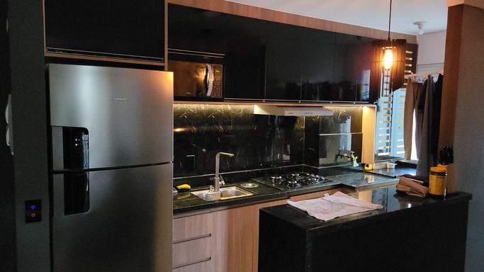 Totalmente mobiliado, com móveis planejados e eletrodomésticos modernos.