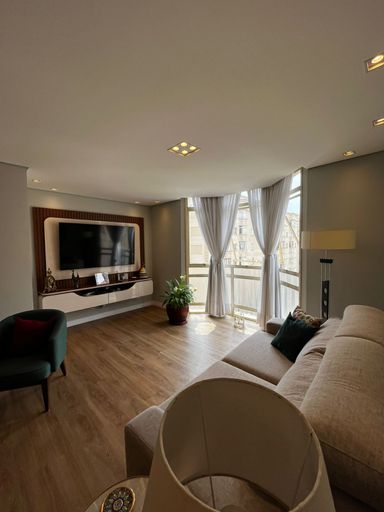 A suíte principal destaca-se pelo acabamento sofisticado, oferecendo um ambiente aconchegante e bem-estar. A sala de estar é ampla, integrada e iluminada, criando um espaço perfeito para convívio familiar e momentos de lazer. A área de serviço e os banheiros possuem acessórios e revestimentos de alta qualidade, complementando o padrão de excelência do imóvel.