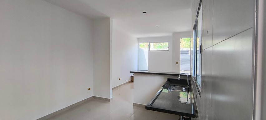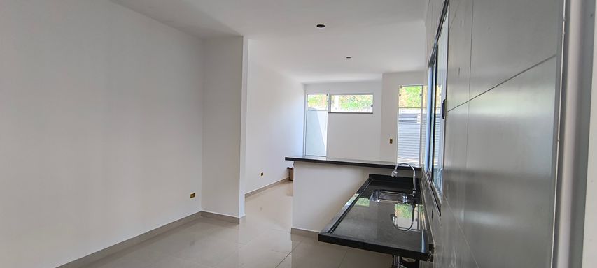 Sala aconchegante com cozinha integrada, proporcionando um ambiente moderno e funcional