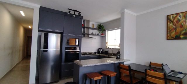 A cozinha é moderna e funcional, com ricos móveis planejados que valorizam ainda mais o imóvel. Conta também com lavanderia coberta, 3 banheiros e garagem para 2 veículos.