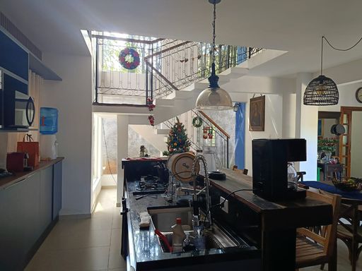 A cozinha planejada oferece organização e funcionalidade, integrando-se perfeitamente ao dia a dia da família. A garagem comporta até 3 veículos, garantindo comodidade e segurança.