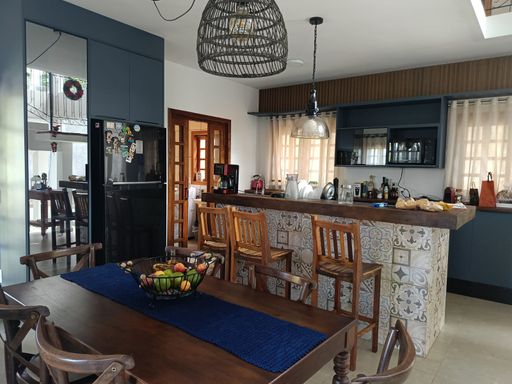 Para quem busca um espaço reservado para trabalho ou estudos, a casa dispõe de um escritório bem distribuído. Um diferencial charmoso é a adega, perfeita para apreciadores de vinho e momentos especiais.