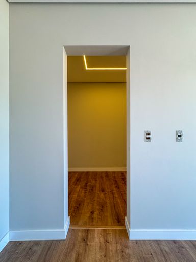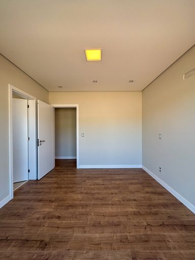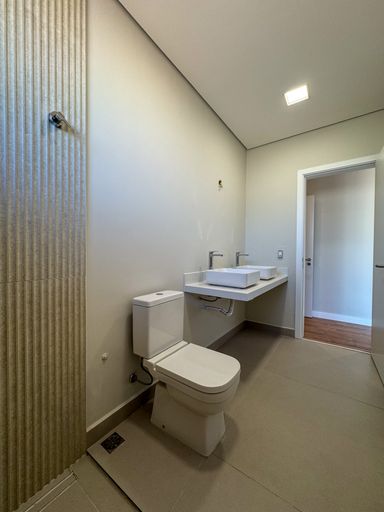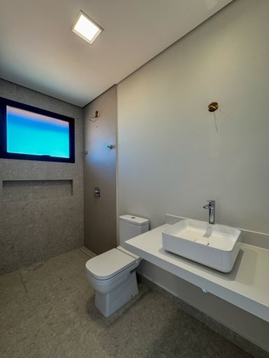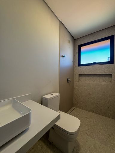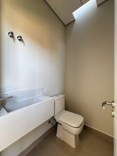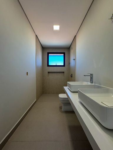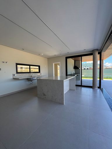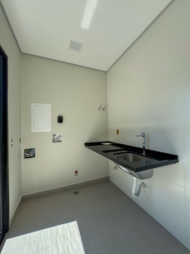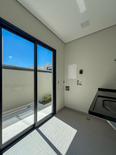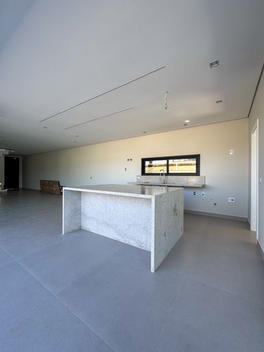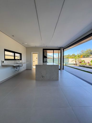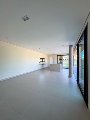 A sala integrada valoriza a convivência e se conecta harmoniosamente à cozinha com bancada, criando um ambiente moderno e acolhedor. O imóvel dispõe de lavabo, lavanderia e despensa, garantindo praticidade no dia a dia.