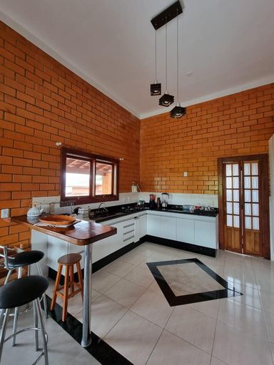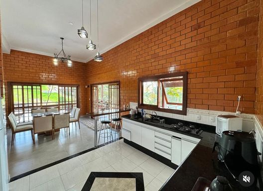 A propriedade conta com quatro dormitórios, sendo quatro suítes, todos amplos, bem iluminados e com acabamento sofisticado. Os ambientes internos incluem uma elegante sala de estar com lareira, sala de TV e cozinha integrada à área gourmet, proporcionando praticidade e integração total dos espaços.