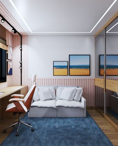 📸 Observação: Imagens ilustrativas em 3D mostrando sugestões de decoração e organização dos ambientes.