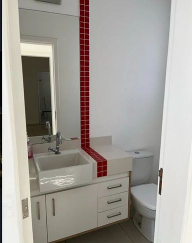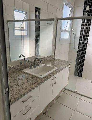 O imóvel dispõe de 3 suítes amplas, todas muito bem distribuídas, sendo uma suíte master que se destaca pelo conforto e privacidade, com varanda exclusiva, closet espaçoso e banheiro com chuveiro duplo. Ao todo, são 5 banheiros, garantindo praticidade para toda a família e visitantes.