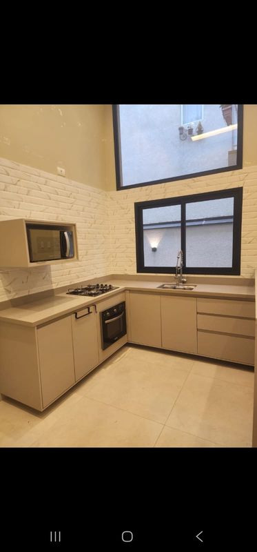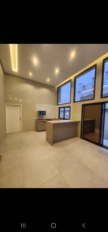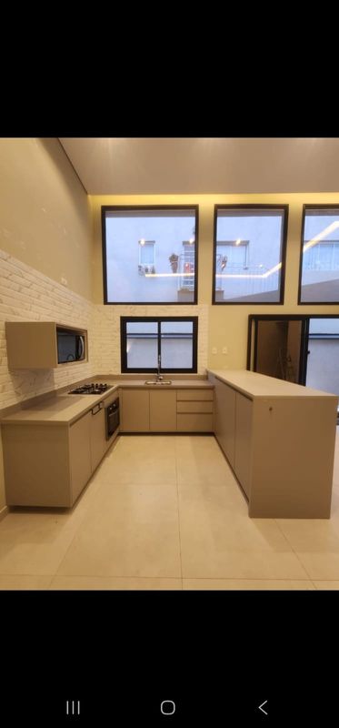 * Sala e cozinha com pé direito duplo.