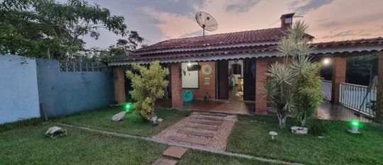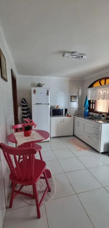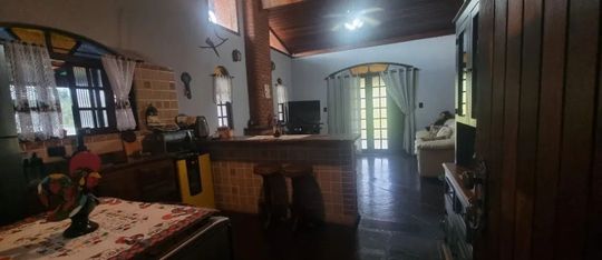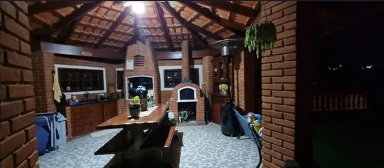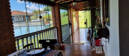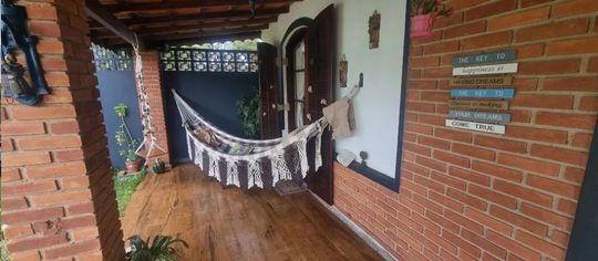 A residência principal é térrea e extremamente aconchegante, contando com 2 dormitórios, sala com lareira em estilo chalé, cozinha americana, banheiro com box, lavabo, lavanderia e uma ampla varanda perfeita para momentos de descanso. O imóvel ainda dispõe de uma segunda moradia independente na parte inferior, ideal para hóspedes ou familiares, com 2 dormitórios, cozinha e banheiro.