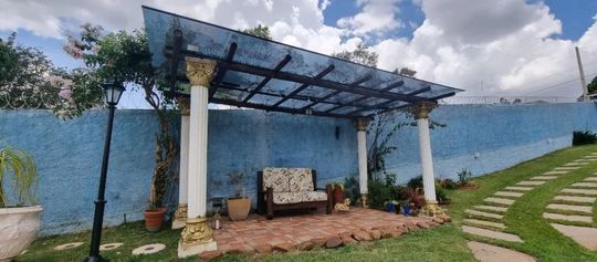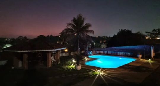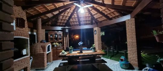 O lazer é um grande destaque: área completa com quiosque equipado com churrasqueira, forno caipira, pia e mobília; piscina ampla com cascata e iluminação em LED; campo de futebol iluminado com banheiro de apoio; além de um charmoso pergolado e amplo pátio com capacidade para até 10 veículos.