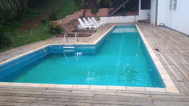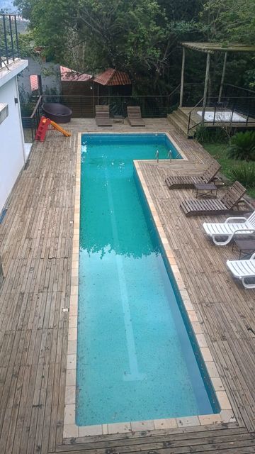 No espaço externo, uma área gourmet com churrasqueira convida a momentos de descontração e celebrações ao ar livre. A piscina proporciona lazer e relaxamento, ideal para dias ensolarados. O estacionamento comporta até 10 veículos ou, alternativamente, pode acomodar oito lugares de furô, atendendo às necessidades de hóspedes e visitantes.