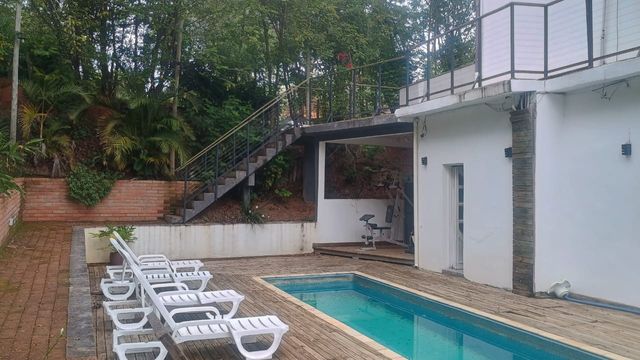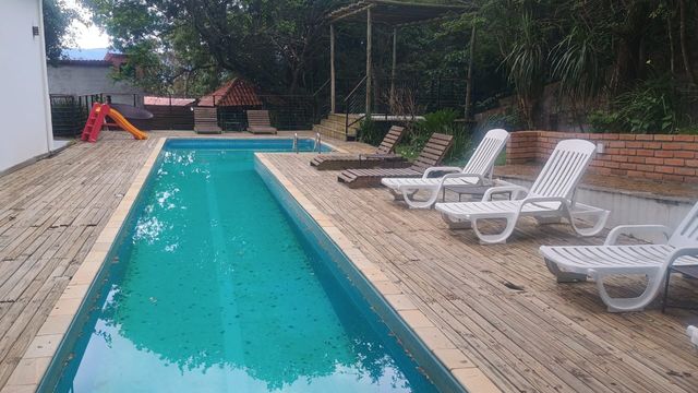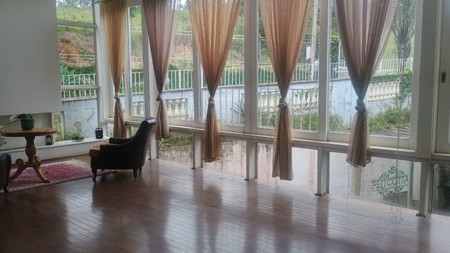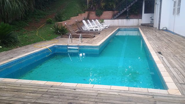 A propriedade possui nove dormitórios, todos suítes cuidadosamente decoradas, garantindo privacidade e conforto para hóspedes ou moradores. A área social é composta por quatro ambientes de sala integrados, incluindo uma sala de TV, uma sala com lareira e espaços para jantar, criando um ambiente acolhedor e perfeito para encontros familiares ou com amigos.
