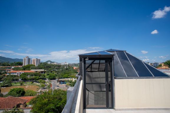 4º andar (rooftop): espaço diferenciado com área aberta, vestiários masculino e feminino e copa — ideal para convivência, eventos ou área de descompressão.