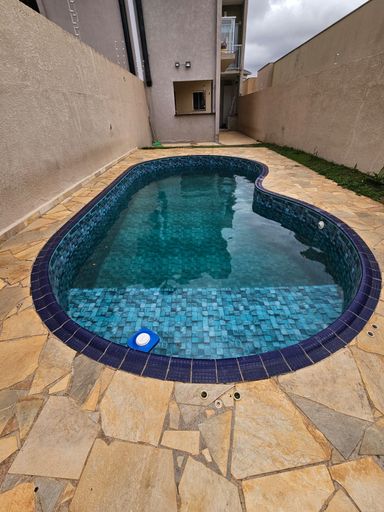 Para momentos de lazer e convivência, a casa oferece uma área gourmet completa, uma belíssima piscina e um jardim com paisagismo cuidadosamente planejado, criando um ambiente perfeito para receber familiares e amigos.